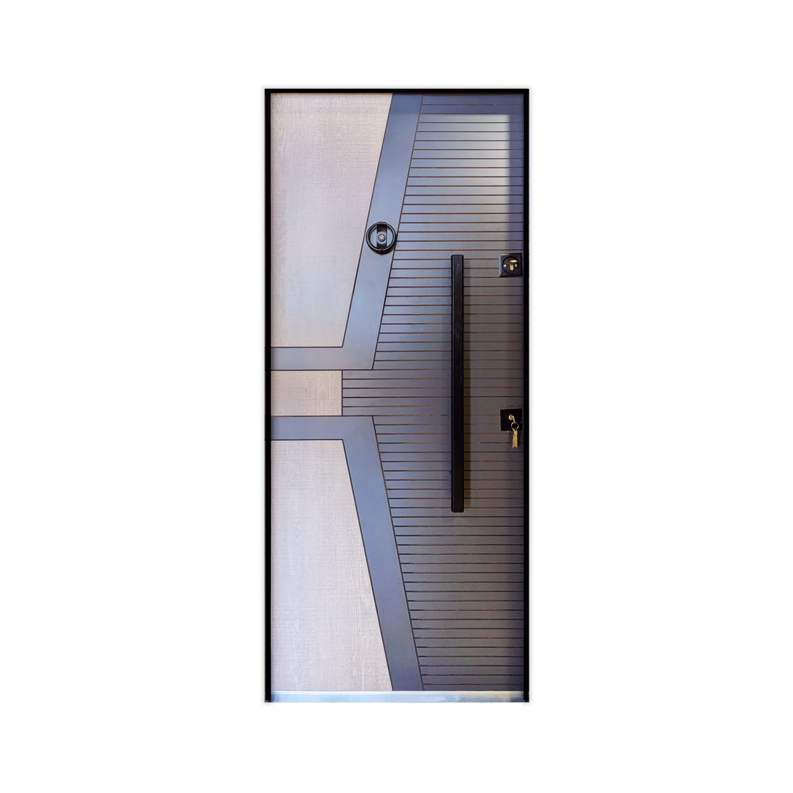 La porte blindée Le Graphite est idéale pour ceux qui recherchent une esthétique moderne et audacieuse sans compromis sur la sécurité. Ses panneaux en MDF stratifié imitent une finition élégante, rehaussés par des lignes géométriques grises et des rainures horizontales qui créent un effet architectural.
